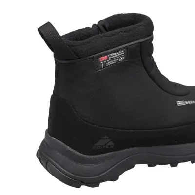 Технологичные ботинки Editex Satellite специально разработаны для холодной и сырой погоды, позволяя ощутить комфорт во время пеших прогулок. Верхний слой выполнен из специального эластичного материала SoftShell, защищающий стопу от непогоды, а мембрана Waterproof Windproof Breathable не позволит влаге попасть внутрь, сохраняя комфортный микроклимат внутри благодаря отводу испарений от кожи. За счёт утеплителя Thinsulate, обладающего высокими термоизоляционными характеристиками благодаря скрученным по спиралям микроволокнам, ботинки отлично удерживают тепло внутри даже во время самых экстремальных условиях. Изделие оборудовано регулируемым ремешком и водонепроницаемой молнией YKK, что обеспечивает удобное надевание обуви и надёжную посадку на ноге. Съёмная стелька OrthoLite с антимикробной обработкой защищает от неприятного запаха и создаёт дополнительную вентиляцию для стопы. Специальная промежуточная подошва, разработанная по технологии Eva, эффективно амортизирует, снижая ударную нагрузку при ходьбе, позволяя тем самым с комфортом ходить по пересечённой местности. Подошва Ultra Slip Protection, состоящая из износостойких материалов, обеспечивает надёжное сцепление даже со скользкой поверхностью благодаря развитому рисунку протектора. Износостойкие материалы ботинок позволяют легко выдерживать длительный пеший поход, а также множественную стирку, сохраняя свой вид и характеристики. Минималистичный дизайн ботинок чёрного цвета отлично сочетается с тёмной одеждой, что позволяет носить данные ботинки не только при суровых погодных условиях, но также и во время городской прогулки.Характеристики: